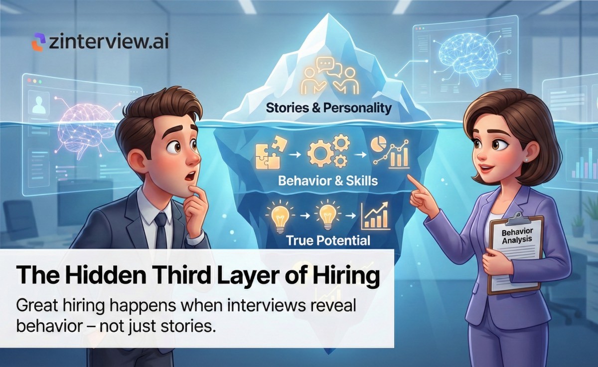 Most hiring operates on two visible layers: Candidates tell stories. Interviewers evaluate them But there’s a quieter truth.
